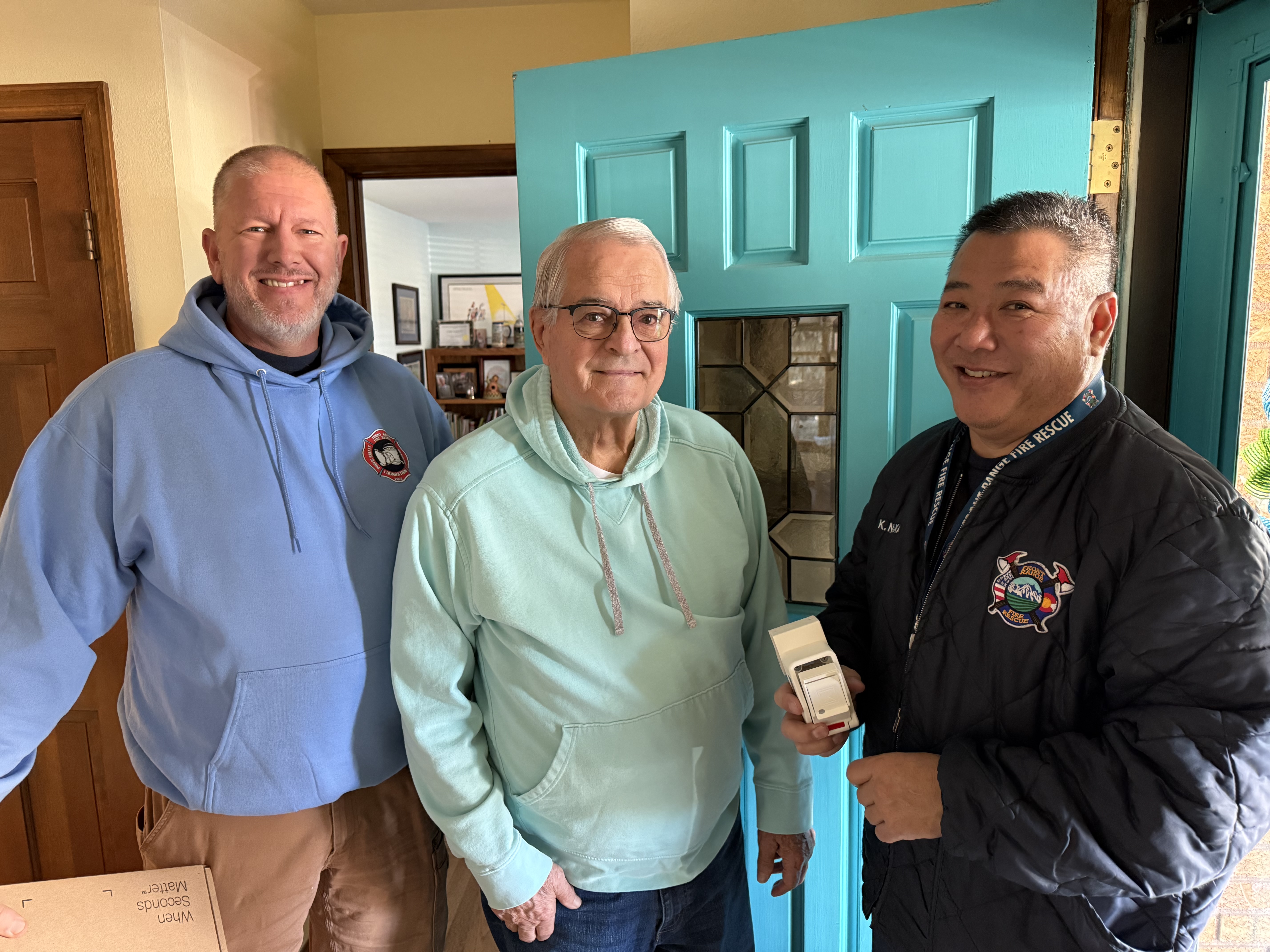 This week, history was made in Johnstown! Members of Front Range Fire Rescue and the FRFR Foundation gathered at the home of Jim Young on North 2nd Street, not for an emergency, but to celebrate the very first installation of our new HomeBox risk reduction program. Jim’s home is the first in our jurisdiction to be equipped with this life-saving tool, and yours could be next!